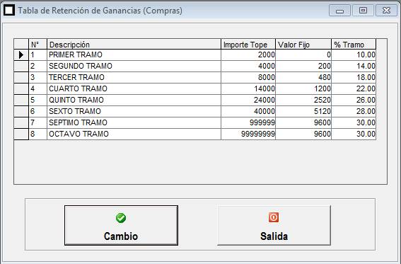Modificar tramos de la tabla que se usa para calcular retenciones de honorarios.